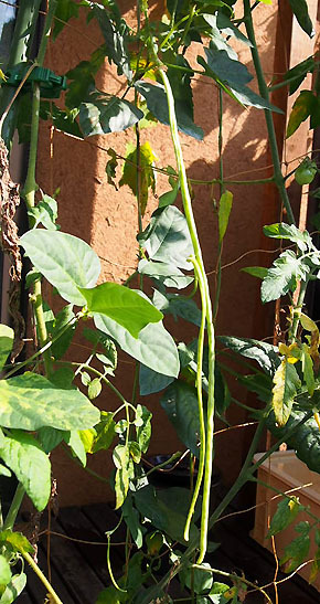 茎と区別が付きにくく、初めて作った時に、最初に豆が成ったときは、変な害虫かと思って捨ててしまった(アホ)。