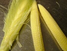 キュウリ、サンチュ、ミニトマト、バジルが採れ、トウモロコシも日増しに大きく育っている。