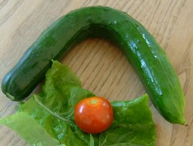 写真のように、直角に折れ曲がったキュウリだが、味はとってもいい。
