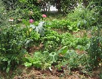 朝起きて野菜を収穫し、生のままハーブと一緒に朝食で食べる。