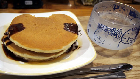 カフェには、あらゆるねこのグッズが展示や販売されていて、食べ物も猫の形。