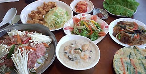 お粥以外にも、ビビンバ・チヂミ・どんぶり・弁当・プルコギ、お酒もあります。
