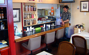 深志高校の北側の住宅地から東町のにぎやかな場所に移り、店は狭くなったけど、スパイスが棚に並ぶ店内はこれぞ「食堂」という雰囲気に満ちてます。