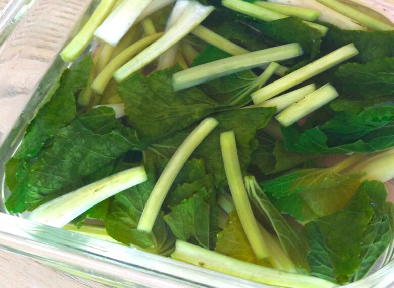 花がないワサビの茎と葉は売っているので買ってきて、美味しくいただいてますが、花がないと春の感じがしませんね。