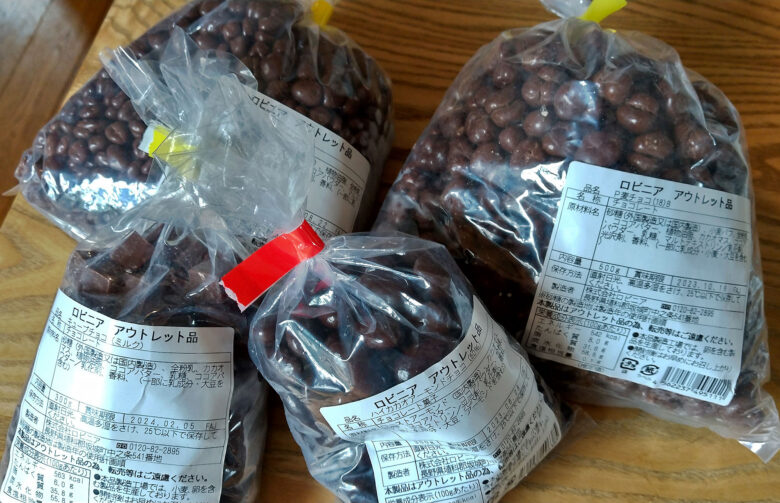 全国のスーパーなどで販売するチョコレートの規格外のアウトレット品を、とっても安く(市販の1/2とか1/3かも?)売る「チョコレートの直売所」が敷地内にあり、近所の人がスーパーのかごに入れて大量に買っていきます。