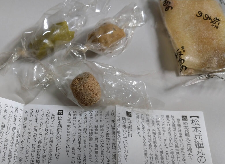 「松本兵糧丸」を食べてみましたが、韓国の朝鮮人参キャンデーと似た、こりゃパワーが出て身体にいいだろうなという味。