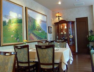 壁にはシェフのお父さんが描かれたスイスの油絵の数々。