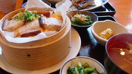 母と娘の手作り料理という「わっぱ飯定食」を頂きました。ちょっとハレの日の家庭の味、という感じです。