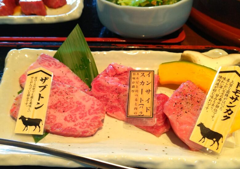 3種類の解説付きの牛肉を食べ比べできるセットメニューもあります。
