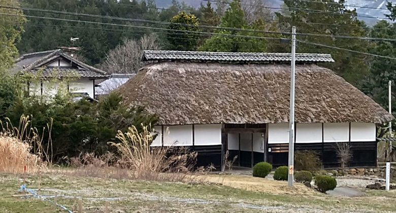 建物の向かいには、松本市の重要文化財の茅葺き屋根の門もありました。