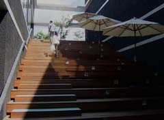 建物がまた素晴らしく、ウッドデッキ風の階段を上ると、3階は諏訪湖を一望できる「展望ガーデン」で、8月はサマーナイトファイヤーフェスティバルの花火を見ながらビールを飲めるそうです(8/15の花火大会の日は特別に10000円~で、受付30分で予約が埋まるらしい)。