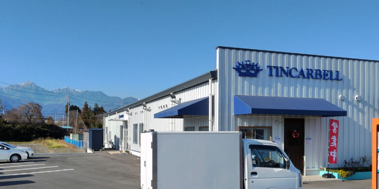 直販工場は、新しい建物で、北アルプスがバックに見える場所にあります。