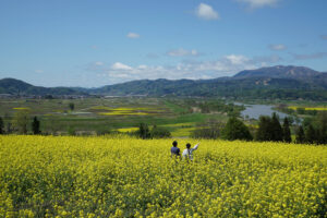 蛇行する千曲川をバックに素晴らしい写真が撮れる