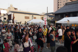 | 日時 | 8月第1土曜(2022年はコロナウイルス対策で踊り手の人数・コース・時間を短縮して開催されました。2021・2020年は中止でした) 午後5時~10時頃(2023年は5時30分~7時15分、2022年はコロナ禍のため昼間の開催でした) 2024年8月3日 |