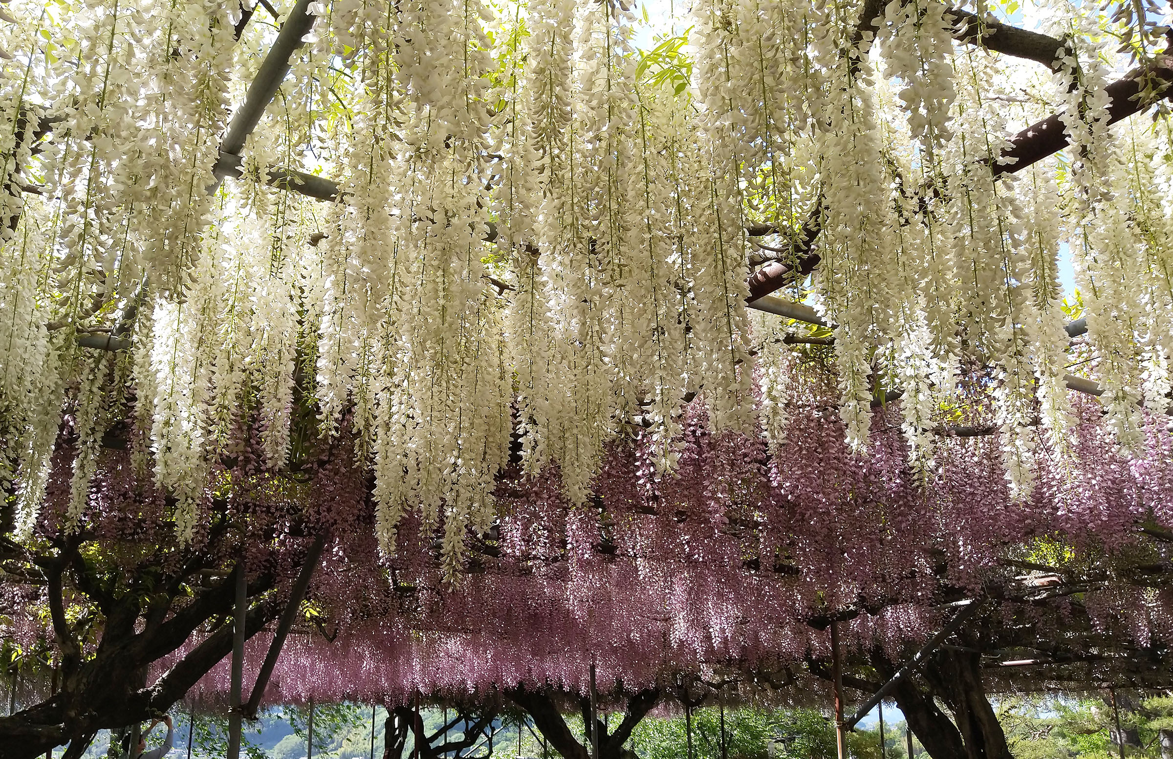 白、ピンク、紫、濃い紫の藤が綺麗でした。