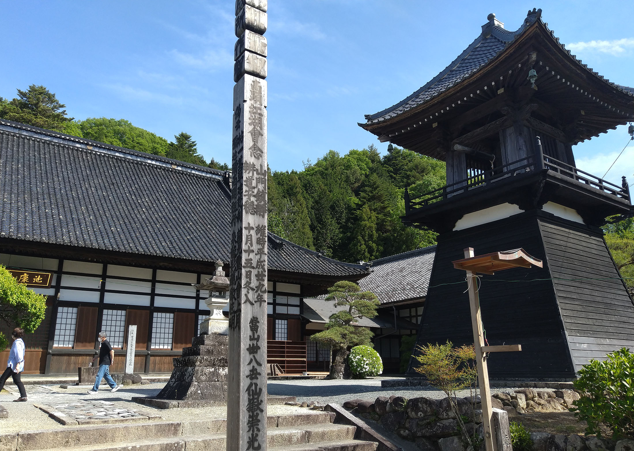 | アクセス:車 | 中央道松川ICから20分。狭い道を上り、看板に従って寺の駐車場に駐める |