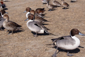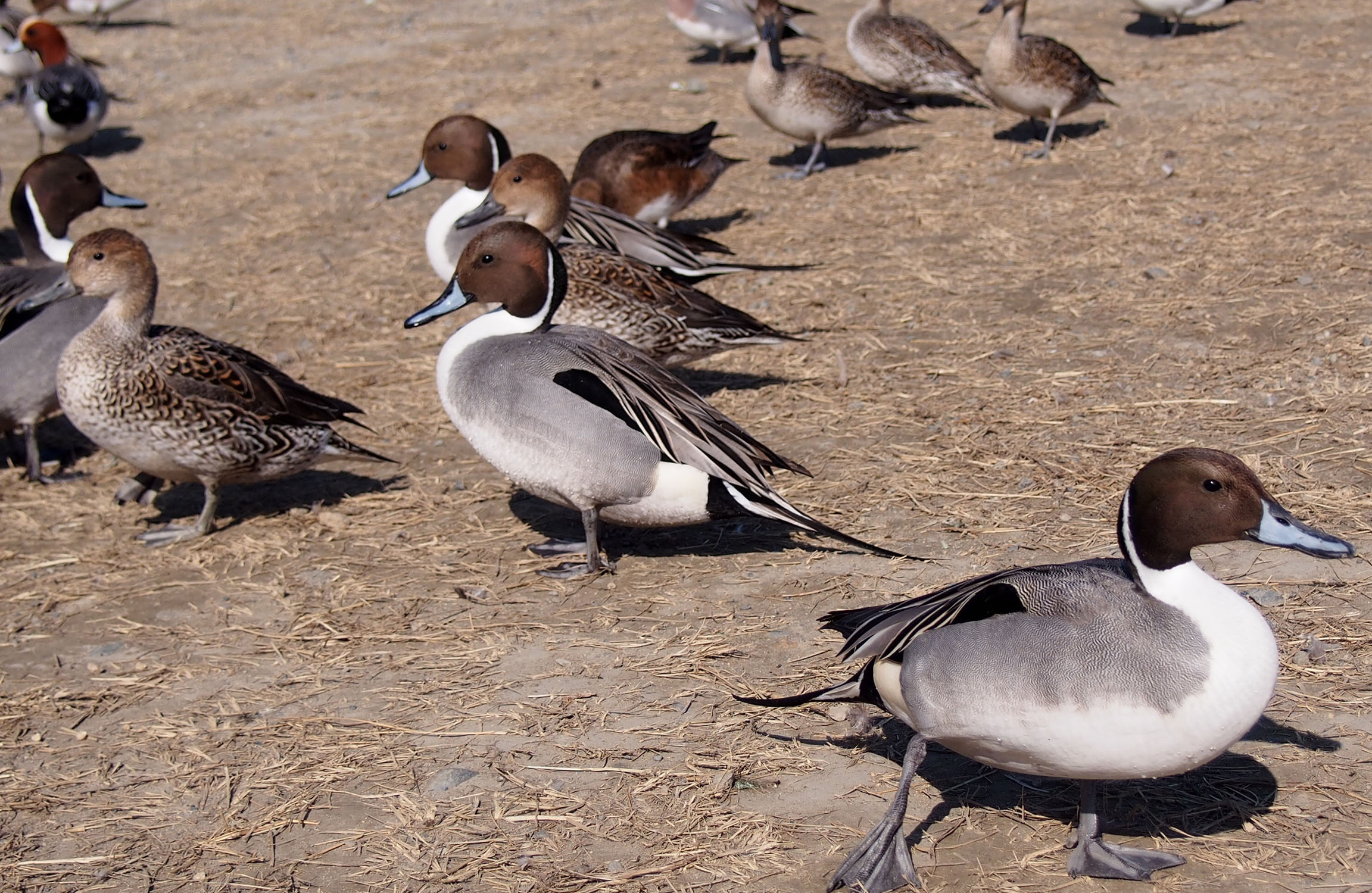白鳥だけでなく、鴨もたくさん見られます。口コミなどで年々観光客が増え、大型バスの駐車スペース(「アクアピア安曇野」内)も用意されています。