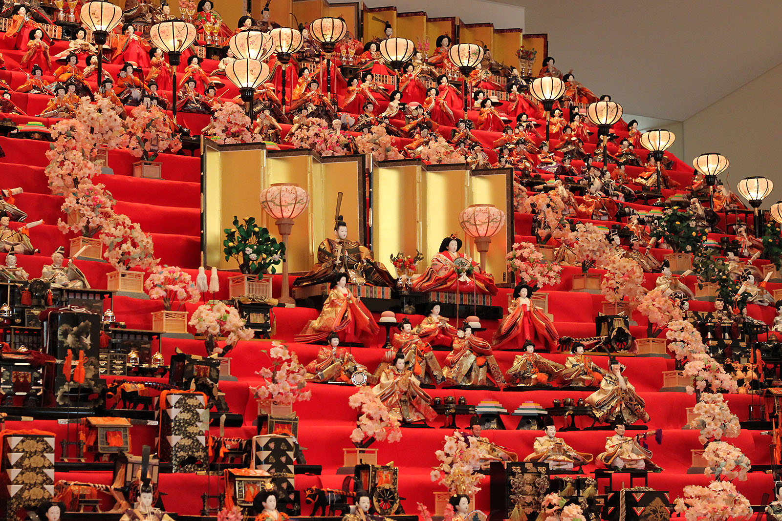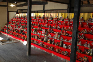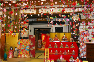 須坂アートパーク内世界の民俗人形博物館で圧巻の「30段雛飾り 千体の雛祭り」が見られる他、昔ながらのひな壇を、市内60箇所以上もの博物館・美術館・商店などで見られます。ひな人形の他、長野県や岐阜県で見かけることの多い「つるし雛」も多く飾られるのが興味深いです。
