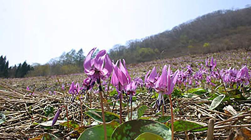 白馬五竜のカタクリは、山の斜面に10万株もあり、比較的濃い紫の花が咲くのが特徴です。