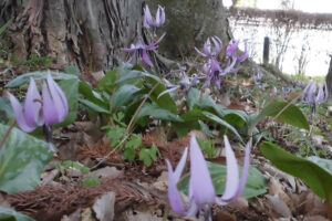 カタクリは、下を向いて咲く可憐な野草で、「早春の妖精」とも呼ばれます。信州のような寒冷地の山野に見られ、白馬村の村花です。山野の減少や乱獲で減り、種を蒔いて育てても花が咲くまで10年近くかかるそうです。気温が低いと花を閉じてしまうので、暖かい日に出かけることをおすすめします。カタクリ粉も昔はこのカタクリが原料でしたが、今ではジャガイモのデンプンから作られます。
