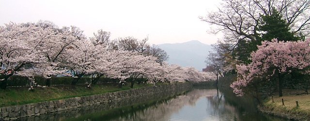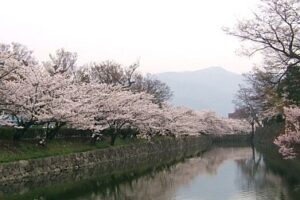 桜の散る頃は、お堀一面に桜の花びらが浮かび、それもまた一興です。