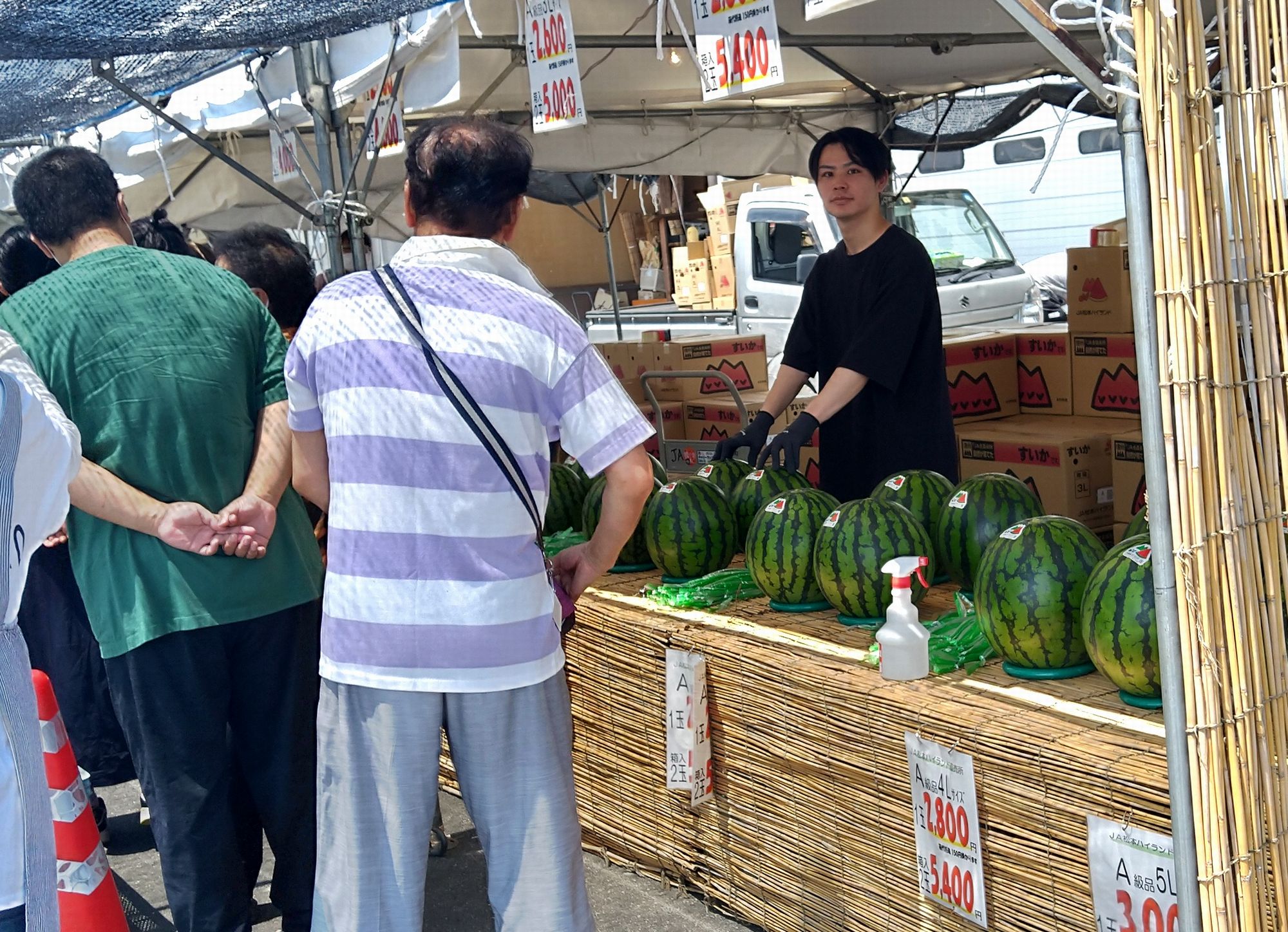 2020年~2023年のコロナ禍の前は、お姉さんたちが見事な包丁さばきで切るスイカを試食できたり、露地物が出始める7月の週末には、「すいか祭り」のイベントが行われ、スイカ購入者の抽選会・重量あてクイズ・種飛ばし大会などが行われていました。