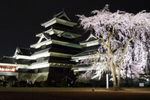 高遠の桜の季節の前後約1ヶ月間がイベント「高遠のさくらまつり」の期間で、ライトアップなども行われます。祭りのイベントの中には、以前は、名物の高遠饅頭の早喰い大会も行われていましたが、2007年から「品位に欠ける」ということでやらなくなりました。