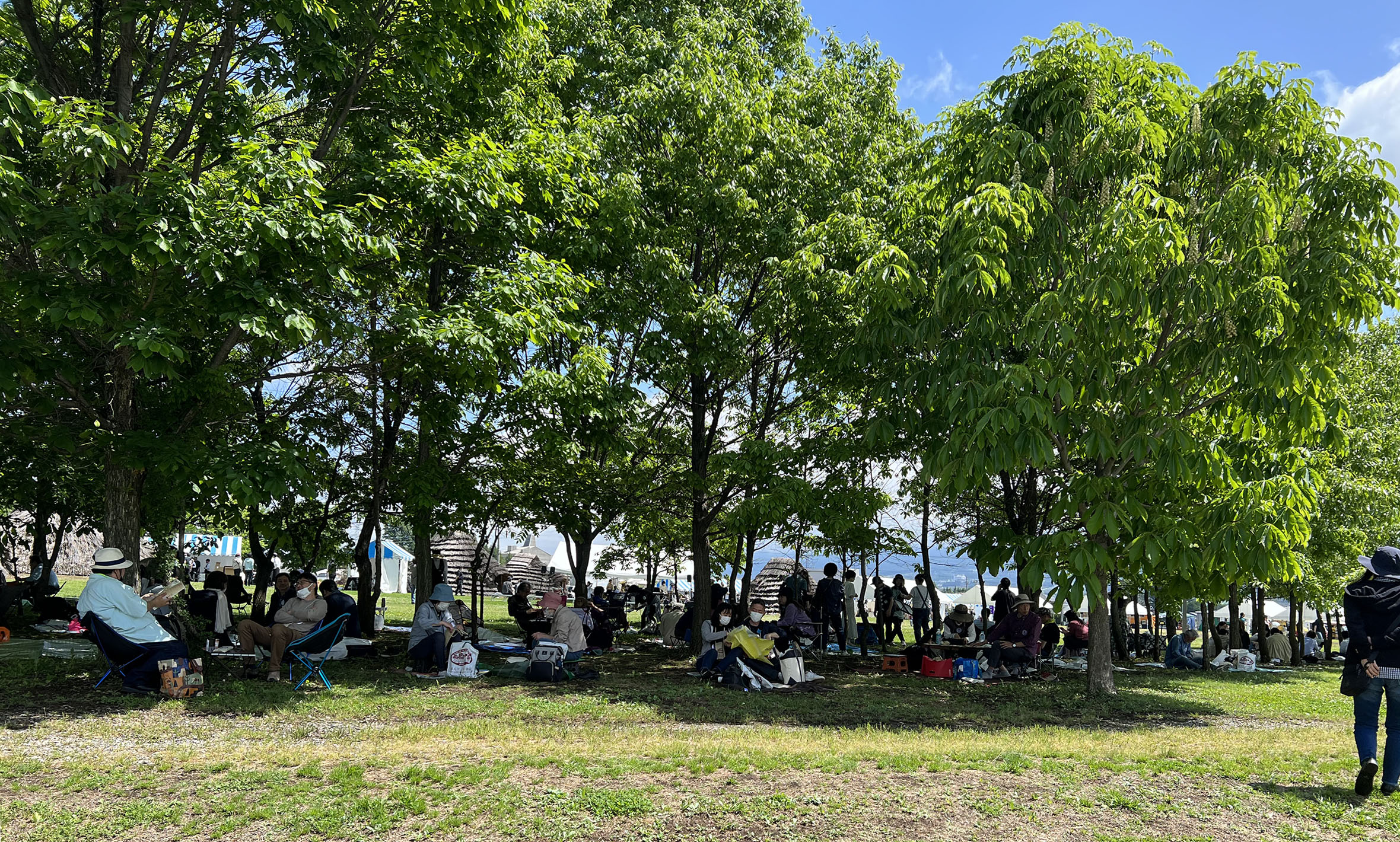 2019年までは、塩尻駅前の「ワインステーション」で各社のワインが販売される他、「ワイナリー巡り」として、臨時循環バスか徒歩で各社のワインの試飲や、工場・ブドウ農園の見学ができる形式でした。ワイナリーごとにいろいろな趣向で迎えてくれたり、ブドウ棚の下で「ぶどう畑ピクニック」として飲食できるワイナリーもありましたが、コロナ渦で2年中止になった後、2022年~2024年は「新緑と楽しむワインピクニック」として、屋外の平出遺跡公園でブースで飲み比べる形式で開催されています。