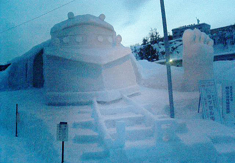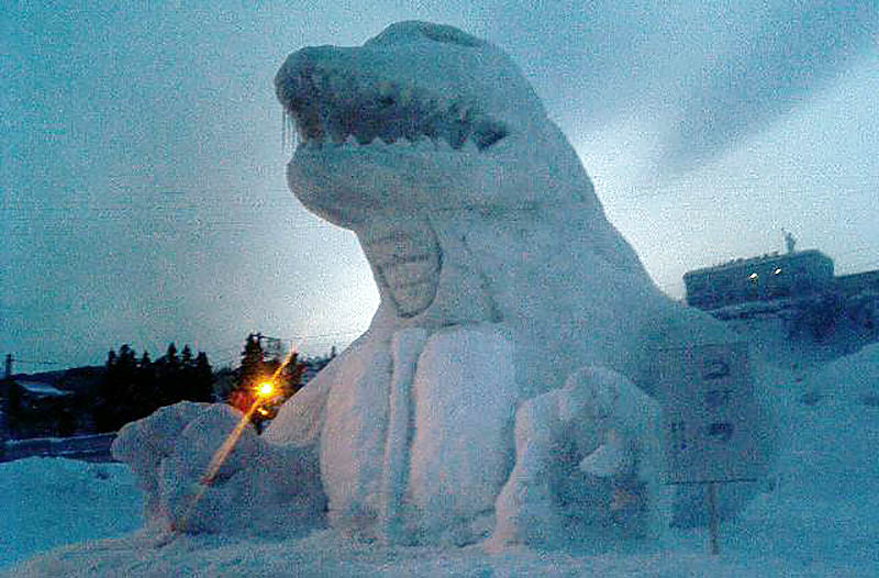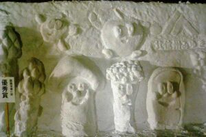 数十体の雪像とそのコンテストがメインですが、その他にも雪のすべり台・雪見灯ろう・雪中みこし・子供向けショー等盛り沢山です。小中高校生や市民が作る雪像は、札幌の雪祭りのようなスケールはありませんが、ほのぼのとした味わいがあります。夜間はイルミネーションで美しく照らされます。