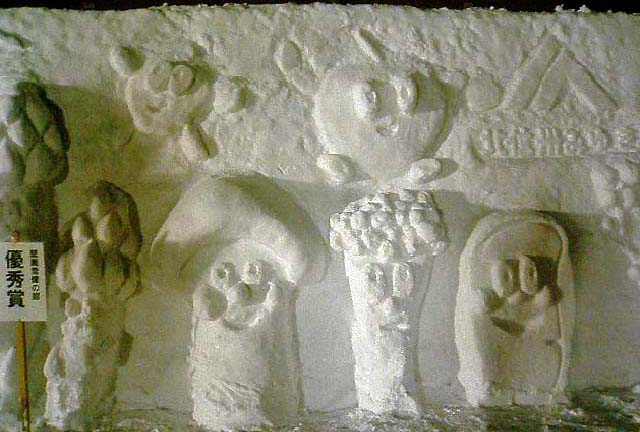 飯山産の野菜の雪像('05年優秀賞)