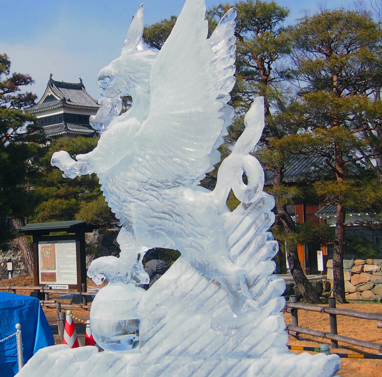 特に、松本市美術館の中庭のタワーが、美術館らしい氷の芸術作品に仕上がってました。氷を削ってどうやってこんなガラス細工のようなものができるのか、職人の技に感嘆。