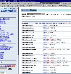 例えば、"Christmas" を入力すると"Christmas break [名] クリスマス休暇"など20語が見つかります。"Christmasy [形] クリスマスらしい"(発音は"くりすましぃ"?)という形容詞も見つかったりして、面白いです。