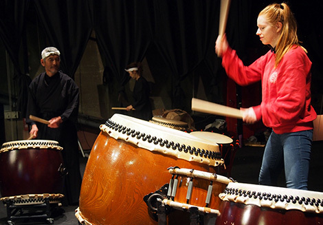 松本城「おもてなし隊」のリーダーの橋本さんの太鼓サークル「響座」が、上土劇場(旧ピカデリーホール)で始めたもので、