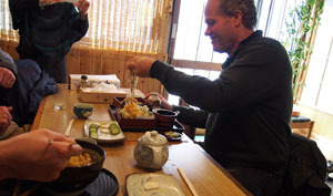 温泉にある小さなソバ屋でソバを初めて食べてもらうのも、いろんなソバの説明をしながらで、面白いひとときでした。