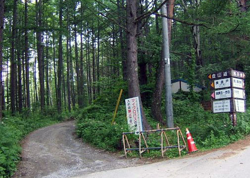 - ※車高の高い4WDの車なら、ダートででこぼこの林道を走って「赤岳山荘」か「やまのこ山荘」の駐車場(1日1000円。登山シーズンは満車のことがしばしば)まで行けば、歩行時間を往復1時間半ほど短縮できます。