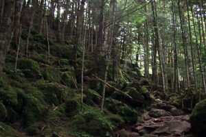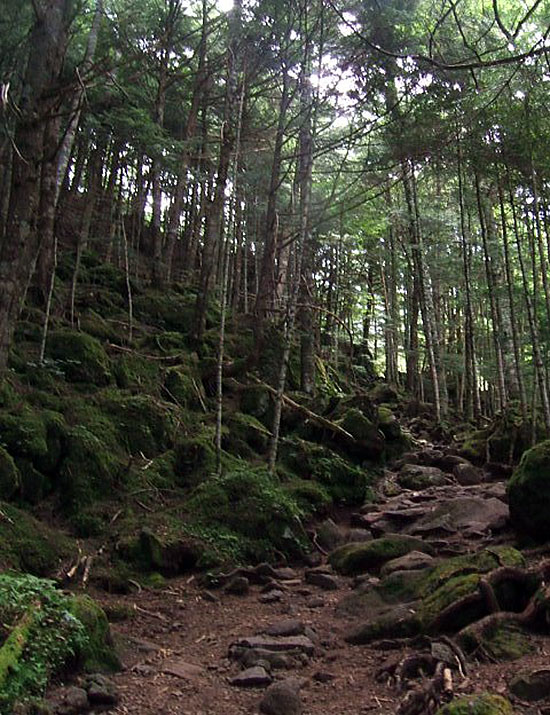 岩だらけの世界から、シラビソの林間のコースになり、赤岳行者小屋に戻ります。