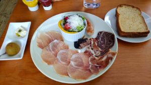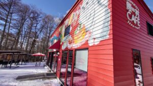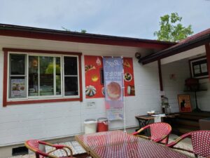 - 右側に見えてくる八ヶ岳山荘の奥の駐車場か、満車なら手前の広い蓼科観光駐車場(どちらも1日500円)に駐車