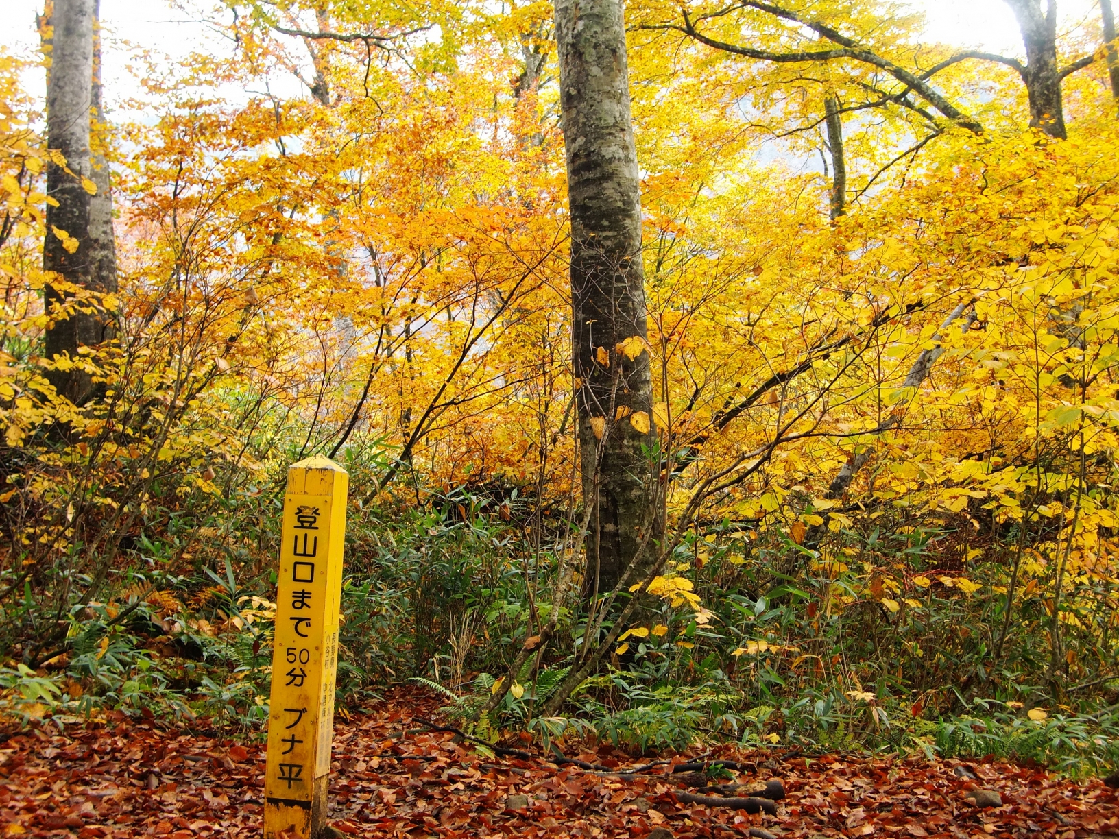 だんだんブナの木が多くなります。ジグザグに登ると、「ブナ平」という標識のある広い場所があります。