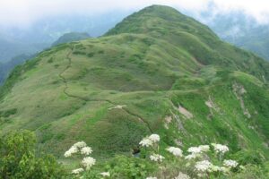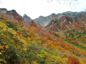 雨飾山は、白馬村の北、長野県と新潟県の県境にある山で、日本百名山に選ばれています。その特徴的な名前に惹かれる人もいて、人気が高い山です。名前の通り、実際雨やガスが多いですが、そうでなければ眺望は素晴らしく、特に、山頂についたら日本海を望むことができるのも感動的です。ブナの木が多く、7月の新緑の時期や、10月の紅葉が写真のように素晴らしいです。