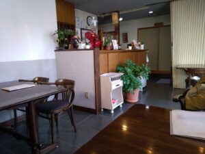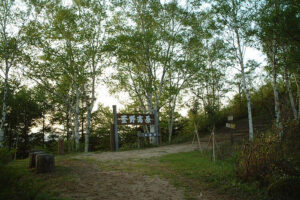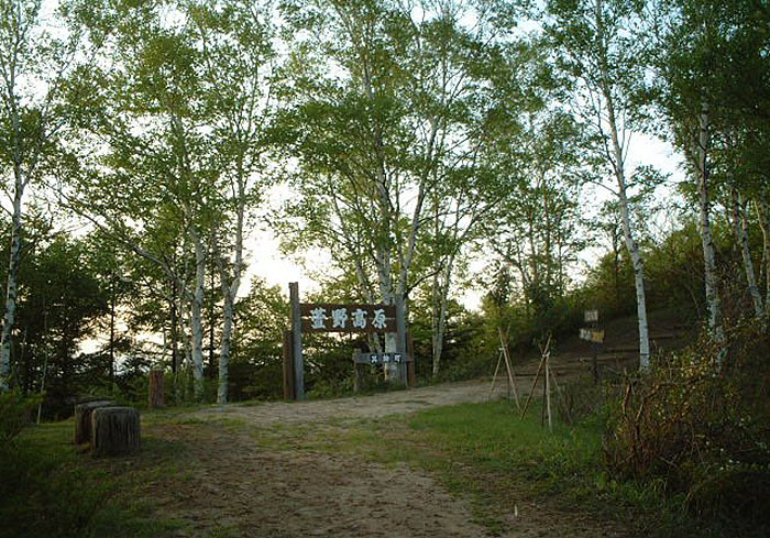 夫婦池をぐるっと回って、分岐点の標識の「右 紅葉丘」の方向に登ると、モミジ・白樺・レンゲツツジなどの雑木林があります。タラノキやコシアブラなどの山菜の樹を見ながら進むと、遊歩道がいったん終わり、キャンプ基地・宿泊施設の「かやの山荘」の建物が見えて来ます。ここまで車を入れて、拠点として散策することも可能です。