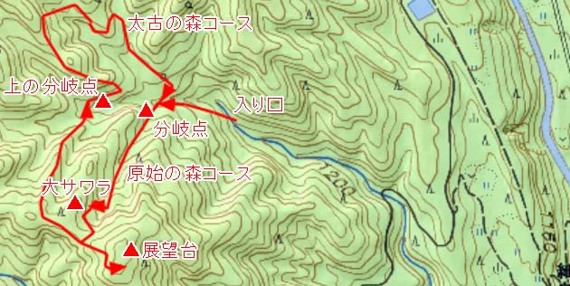 分岐点~大サワラ~展望台(原始の森コース)(40分)
