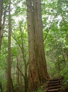 水木沢天然林の樹齢550年、直径24mの大さわらと巨大檜は圧巻でした。