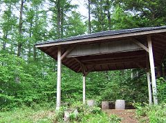 やがて、特にさほど特徴のない場所に、「金倉坂」と書かれた標識があります。そこから5分ほどで別の登山道と合流する分岐点に出ます。標識に従って右に行くと尾根歩きになり、傾斜も緩やかになります。少し歩くとあずま屋(休憩所)が見えて来ます。