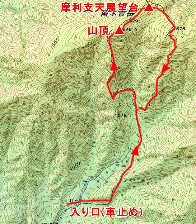 山頂~摩利支天展望台(約40分)