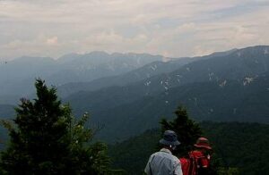 南木曽岳の登山道は、木曽の林の中を歩くことが多いので、夏でも日影で涼しいです。名古屋・岐阜方面から近く、そちらから来る方が多い山です。