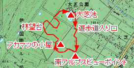 アカマツの小屋~大芝湖(約30分)