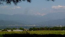 ビューポイント向かいの牧草地と南アルプス