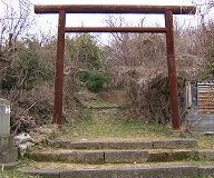 神社の左側の奥に、登る道があり、古墳のある妻女山の山頂や、松代の象山まで歩けるようです。ところどころ「アンズの里ハイキングコース」の標識がありますが、今ではあまり整備されていず、熊が出ることがあるようです。