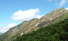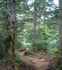 登山届出所右の登山道を進みます。シラビソの木が多い林間コースです。やがて左に朽ちた古い小屋があり、その手前は視界が開けて槍ヶ岳~西穂高岳が見えます。このあたりまでは道も整備されており、傾斜も緩やかで、雨天や道に雪があるような悪コンディションでなければ、運動靴の小学生でも歩けます。西穂山荘まで行く準備のない人はこのあたりまで来て引き返しても良いでしょう。