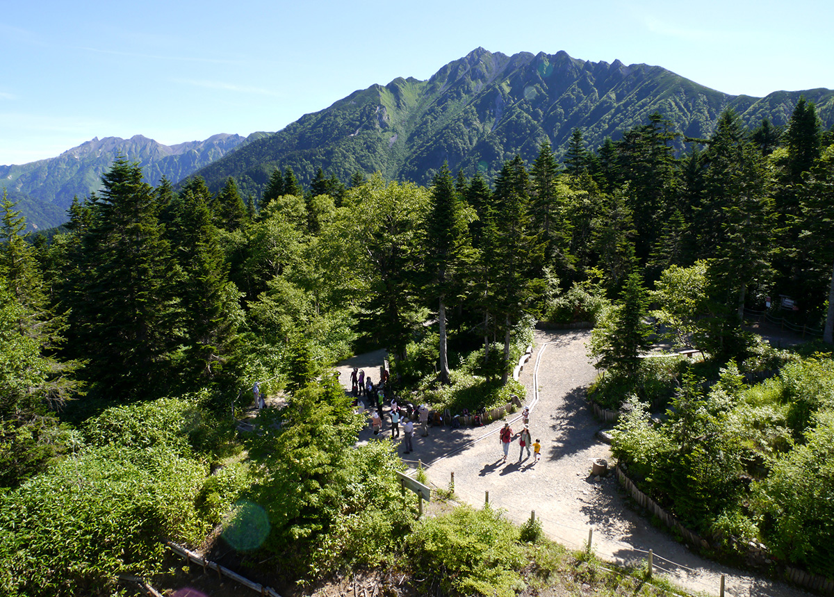 新穂高ロープウェイ降り口~屋上展望台~登山届出所(約20分)